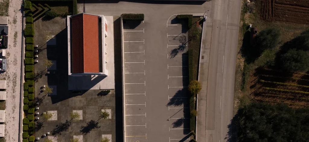 The mortuary is located in the village of Gorica. Together with the church and cemetery, it forms a sacred complex. The design of the mortuary defines the entrance to the complex, starting from the parking area and entrance plaza up to the mortuary building itself.