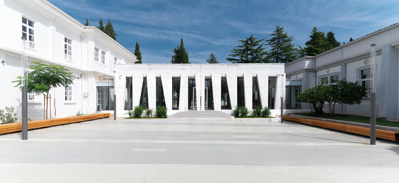 Together with the city library, it forms a complex of two separate buildings connected by a modern bridge. The existing structures of the former barracks have been reconstructed and repurposed. The inner courtyard of the U-block is covered, forming the main large hall inside. The ground floor of the renovated building houses the library, multimedia facilities, and a public performance hall.